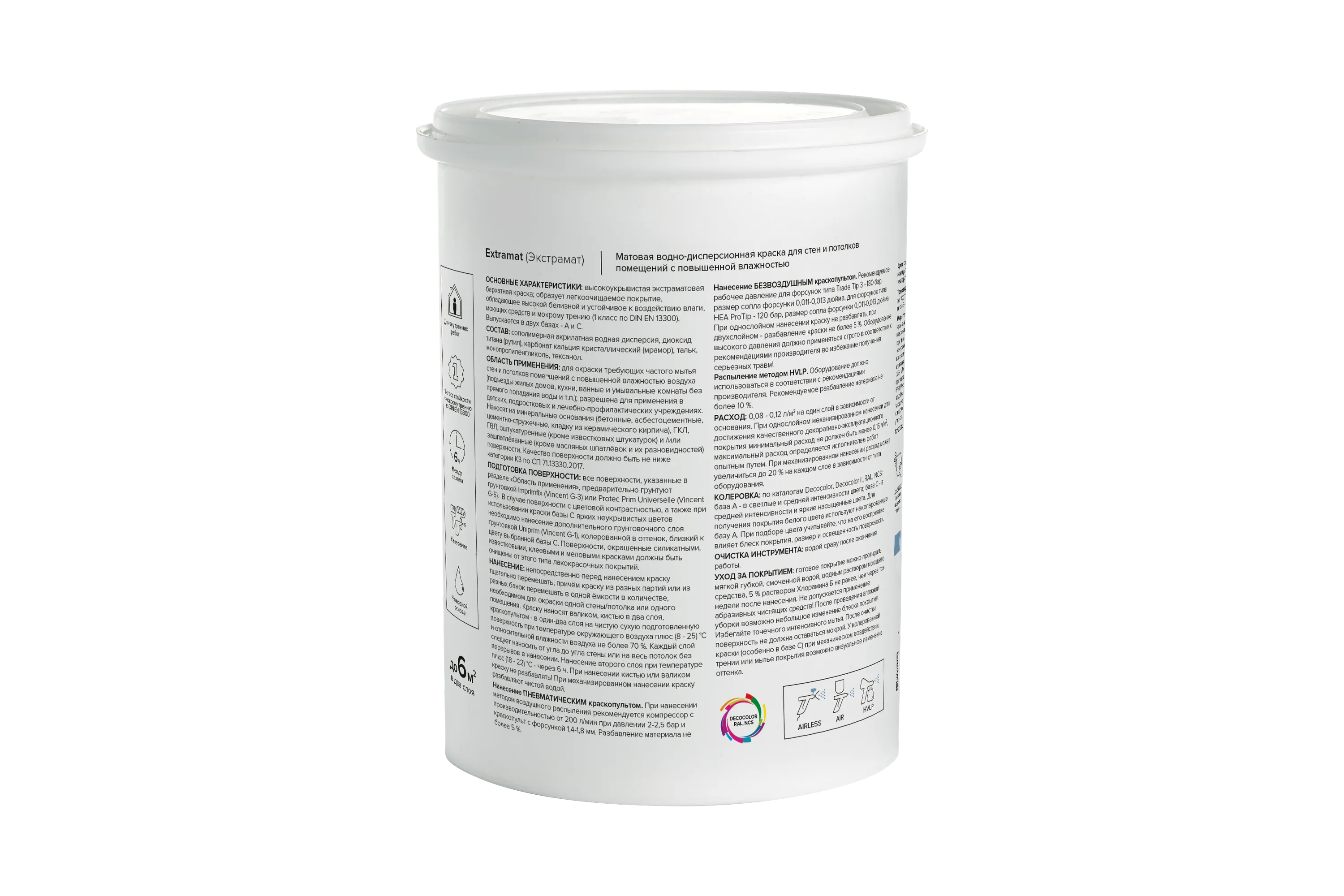 • Разбавление кисть, валик - не требуется; пневматический и воздушный краскопульт - до 5% водой; HVLP - до 10% водой